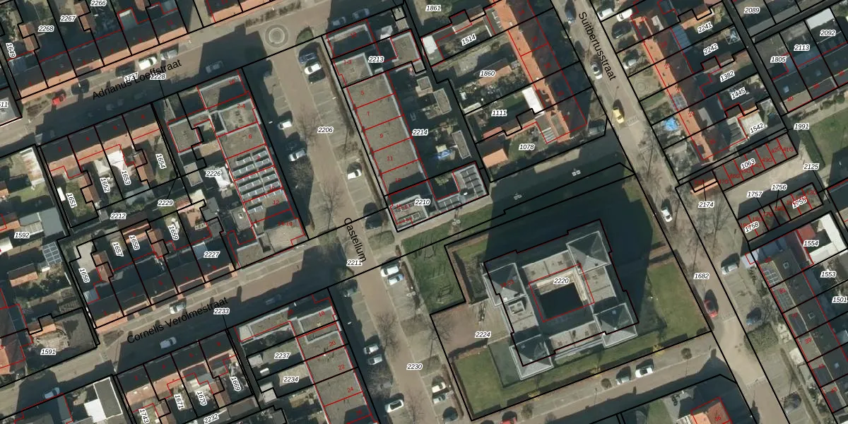 Het perceel waarop Castellum 17 staat heeft een oppervlakte van 202 m². Dit is een middelgroot perceel. De perceeloppervlakte wordt geregistreerd door het Kadaster. Gedetailleerde informatie over de maten van dit perceel kunt u vinden in het rapport Kadastrale kaart met maatvoering van Castellum 17.