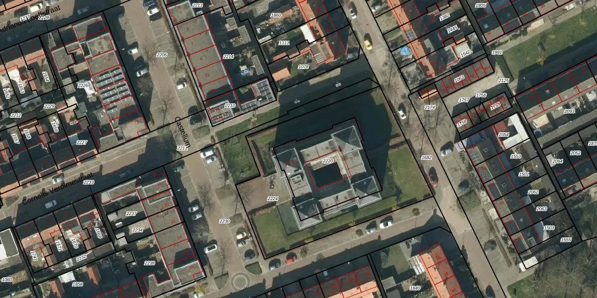 Het perceel waarop Castellum 27 staat heeft een oppervlakte van 726 m². Dit is een groot perceel. De perceeloppervlakte wordt geregistreerd door het Kadaster. Gedetailleerde informatie over de maten van dit perceel kunt u vinden in het rapport Kadastrale kaart met maatvoering van Castellum 27.
