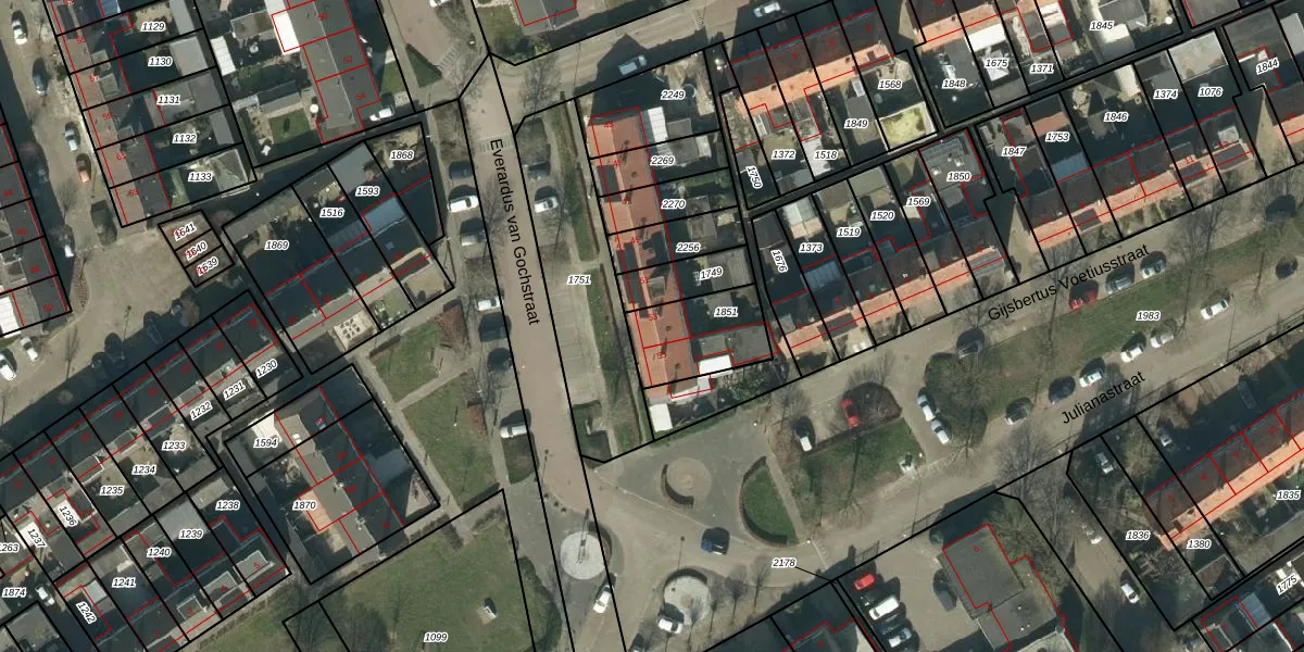 Everardus van Gochstraat 53 is gelegen op kadastraal perceel HDN02C1851. Deze kadastrale aanduiding is uniek en wordt gebruikt door het Kadaster om eigendomsrechten en andere zakelijke rechten vast te leggen. Het perceel maakt onderdeel uit van de kadastrale gemeente Heusden.