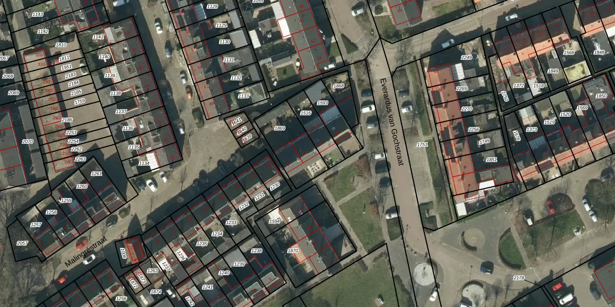Everardus van Gochstraat 60 is gelegen op kadastraal perceel HDN02C1869. Deze kadastrale aanduiding is uniek en wordt gebruikt door het Kadaster om eigendomsrechten en andere zakelijke rechten vast te leggen. Het perceel maakt onderdeel uit van de kadastrale gemeente Heusden.