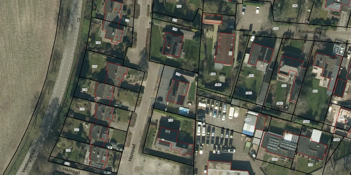 Het perceel waarop Hazepad 15 staat heeft een oppervlakte van 581 m². Dit is een groot perceel. De perceeloppervlakte wordt geregistreerd door het Kadaster. Gedetailleerde informatie over de maten van dit perceel kunt u vinden in het rapport Kadastrale kaart met maatvoering van Hazepad 15.