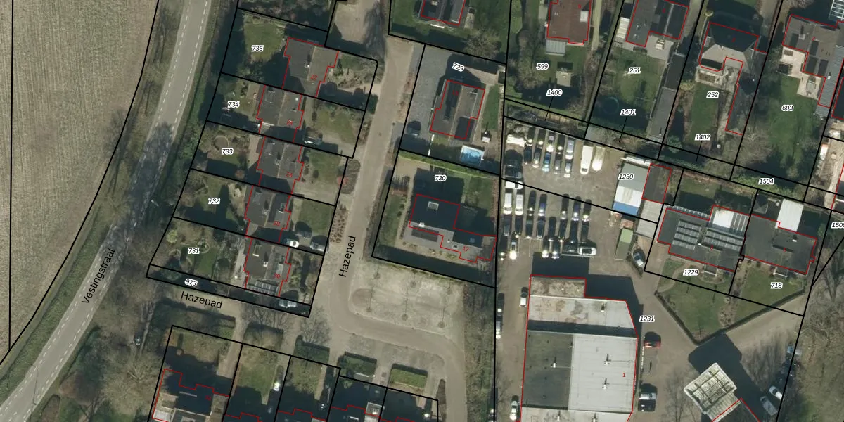 Het perceel waarop Hazepad 17 staat heeft een oppervlakte van 712 m². Dit is een groot perceel. De perceeloppervlakte wordt geregistreerd door het Kadaster. Gedetailleerde informatie over de maten van dit perceel kunt u vinden in het rapport Kadastrale kaart met maatvoering van Hazepad 17.