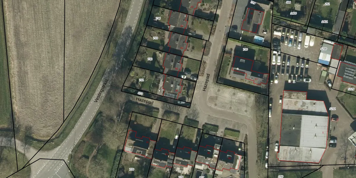 Het perceel waarop Hazepad 30 staat heeft een oppervlakte van 470 m². Dit is een groot perceel. De perceeloppervlakte wordt geregistreerd door het Kadaster. Gedetailleerde informatie over de maten van dit perceel kunt u vinden in het rapport Kadastrale kaart met maatvoering van Hazepad 30.