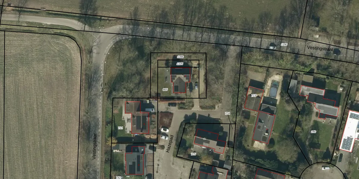 Het perceel waarop Hazepad 4 staat heeft een oppervlakte van 400 m². Dit is een groot perceel. De perceeloppervlakte wordt geregistreerd door het Kadaster. Gedetailleerde informatie over de maten van dit perceel kunt u vinden in het rapport Kadastrale kaart met maatvoering van Hazepad 4.