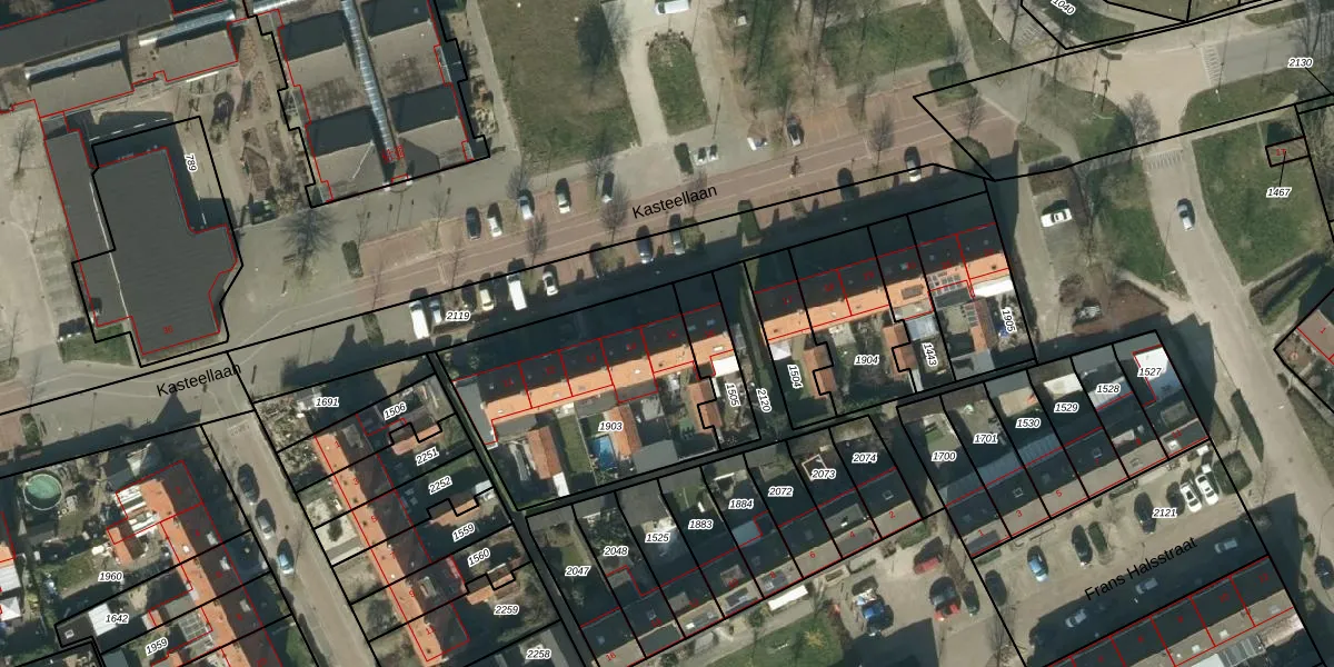 Kasteellaan 15 is gelegen op kadastraal perceel HDN02C1903. Deze kadastrale aanduiding is uniek en wordt gebruikt door het Kadaster om eigendomsrechten en andere zakelijke rechten vast te leggen. Het perceel maakt onderdeel uit van de kadastrale gemeente Heusden.