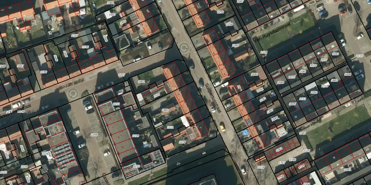 Suitbertusstraat 16 is gelegen op kadastraal perceel HDN02C1860. Deze kadastrale aanduiding is uniek en wordt gebruikt door het Kadaster om eigendomsrechten en andere zakelijke rechten vast te leggen. Het perceel maakt onderdeel uit van de kadastrale gemeente Heusden.