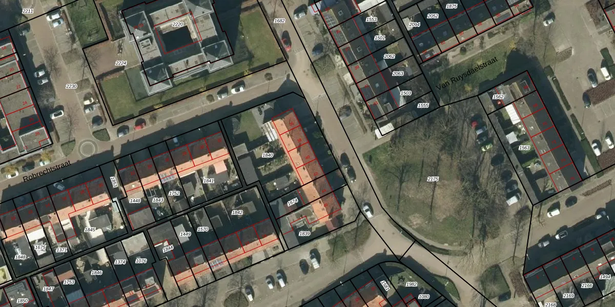 Het perceel waarop Suitbertusstraat 40 staat heeft een oppervlakte van 824 m². Dit is een groot perceel. De perceeloppervlakte wordt geregistreerd door het Kadaster. Gedetailleerde informatie over de maten van dit perceel kunt u vinden in het rapport Kadastrale kaart met maatvoering van Suitbertusstraat 40.