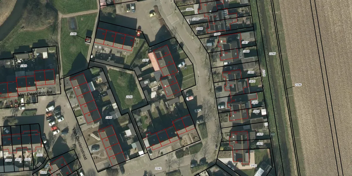 Van Deelenstraat 46 is gelegen op kadastraal perceel HDN02C1907. Deze kadastrale aanduiding is uniek en wordt gebruikt door het Kadaster om eigendomsrechten en andere zakelijke rechten vast te leggen. Het perceel maakt onderdeel uit van de kadastrale gemeente Heusden.
