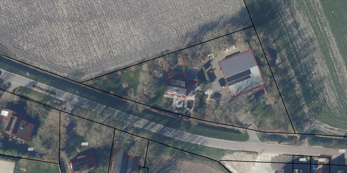 Het perceel waarop Ambachtsdijk 3 staat heeft een oppervlakte van 3935 m². Dit is een zeer groot perceel. De perceeloppervlakte wordt geregistreerd door het Kadaster. Gedetailleerde informatie over de maten van dit perceel kunt u vinden in het rapport Kadastrale kaart met maatvoering van Ambachtsdijk 3.