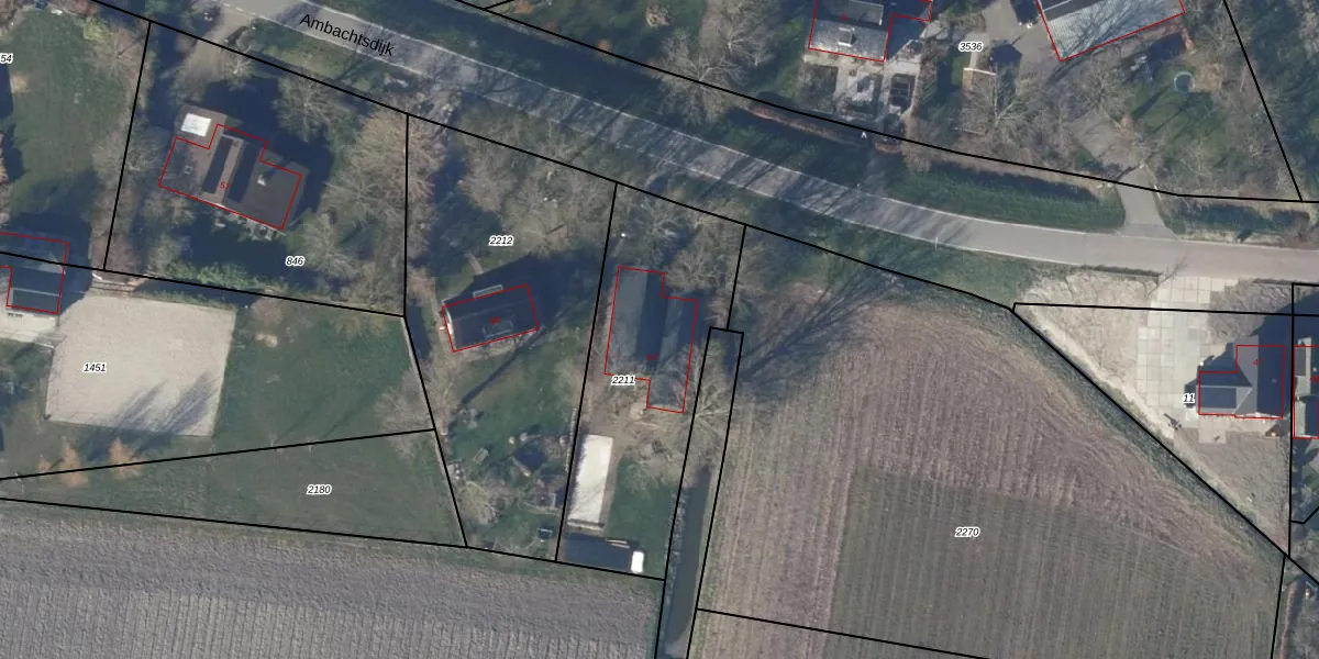 Gebruik de zoekbalk of klik op een perceel voor informatie over de adressen binnen dit perceel.