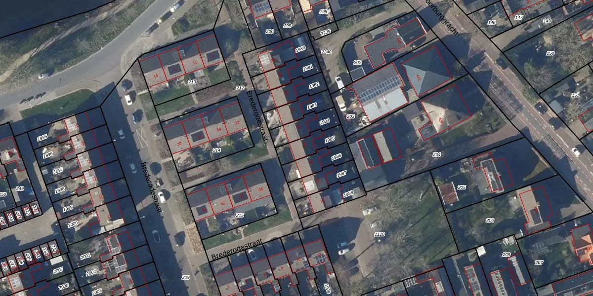 Het perceel waarop Brederodestraat 20 staat heeft een oppervlakte van 150 m². Dit is een middelgroot perceel. De perceeloppervlakte wordt geregistreerd door het Kadaster. Gedetailleerde informatie over de maten van dit perceel kunt u vinden in het rapport Kadastrale kaart met maatvoering van Brederodestraat 20.