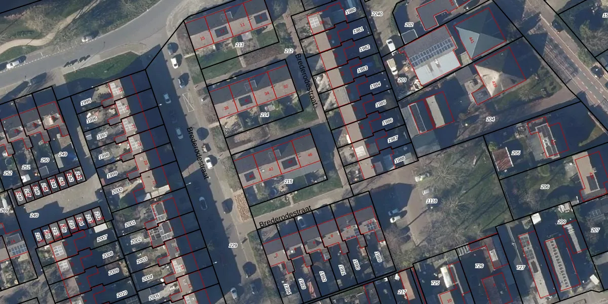 Brederodestraat 46 is gelegen op kadastraal perceel LGD00A215. Deze kadastrale aanduiding is uniek en wordt gebruikt door het Kadaster om eigendomsrechten en andere zakelijke rechten vast te leggen. Het perceel maakt onderdeel uit van de kadastrale gemeente Langedijk.