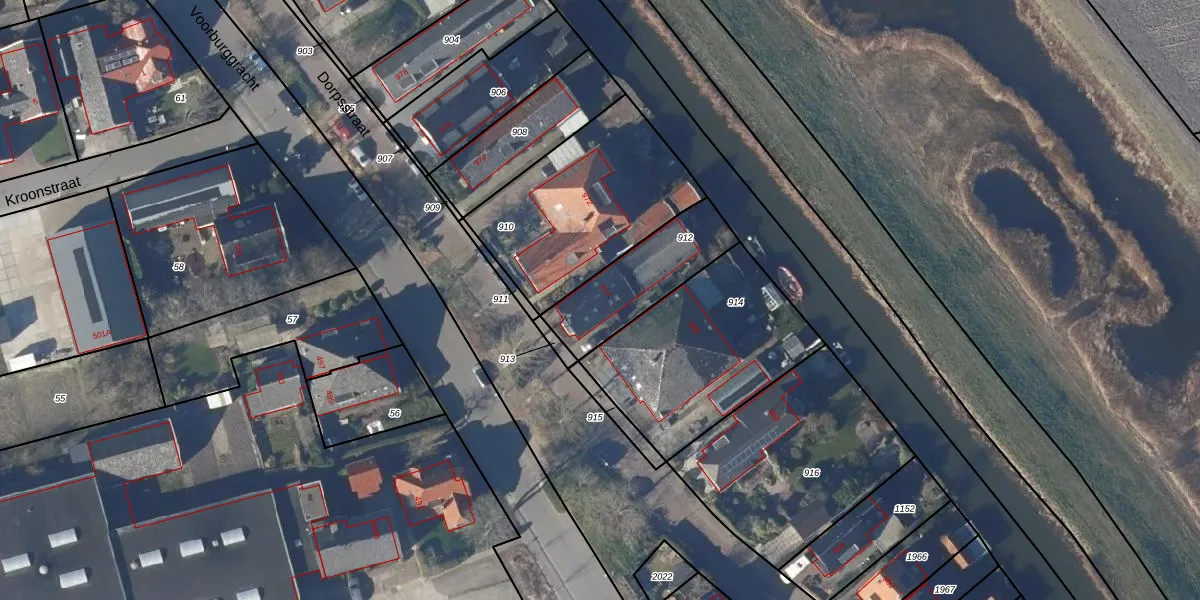 Dorpsstraat 970 is gelegen op kadastraal perceel LGD00A912. Deze kadastrale aanduiding is uniek en wordt gebruikt door het Kadaster om eigendomsrechten en andere zakelijke rechten vast te leggen. Het perceel maakt onderdeel uit van de kadastrale gemeente Langedijk.