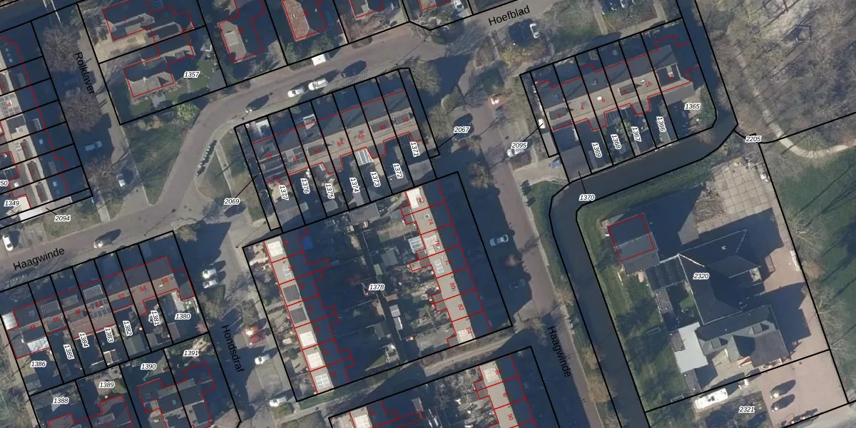 Het perceel waarop Haagwinde 74 staat heeft een oppervlakte van 2030 m². Dit is een zeer groot perceel. De perceeloppervlakte wordt geregistreerd door het Kadaster. Gedetailleerde informatie over de maten van dit perceel kunt u vinden in het rapport Kadastrale kaart met maatvoering van Haagwinde 74.