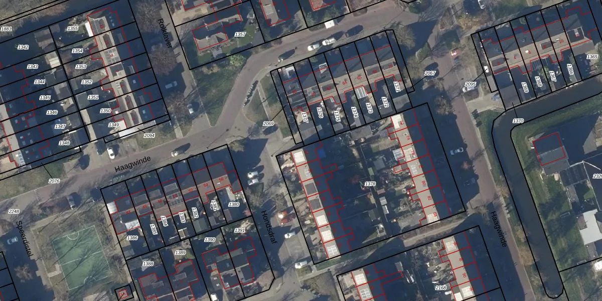 Het perceel waarop Hondsdraf 34 staat heeft een oppervlakte van 2030 m². Dit is een zeer groot perceel. De perceeloppervlakte wordt geregistreerd door het Kadaster. Gedetailleerde informatie over de maten van dit perceel kunt u vinden in het rapport Kadastrale kaart met maatvoering van Hondsdraf 34.