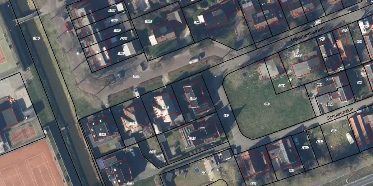 Het perceel waarop Nijverheidsstraat 65 staat heeft een oppervlakte van 402 m². Dit is een groot perceel. De perceeloppervlakte wordt geregistreerd door het Kadaster. Gedetailleerde informatie over de maten van dit perceel kunt u vinden in het rapport Kadastrale kaart met maatvoering van Nijverheidsstraat 65.
