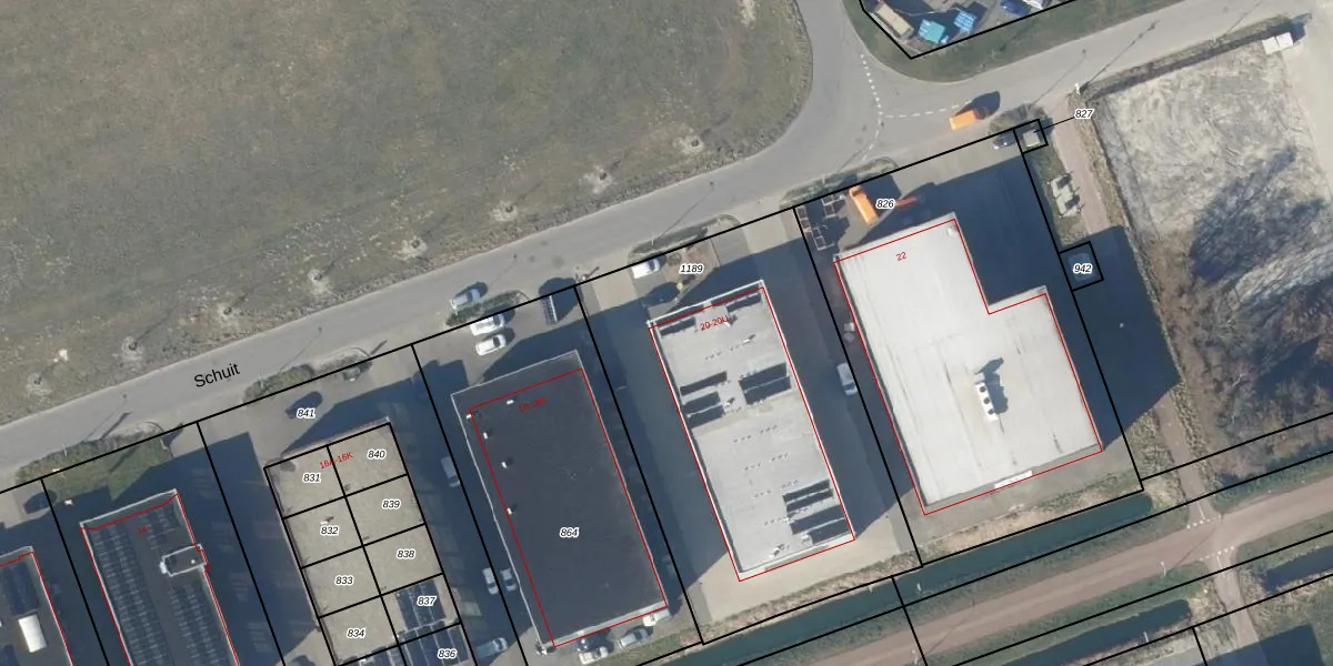 Het perceel waarop Schuit 20 staat heeft een oppervlakte van 1991 m². Dit is een zeer groot perceel. De perceeloppervlakte wordt geregistreerd door het Kadaster. Gedetailleerde informatie over de maten van dit perceel kunt u vinden in het rapport Kadastrale kaart met maatvoering van Schuit 20.