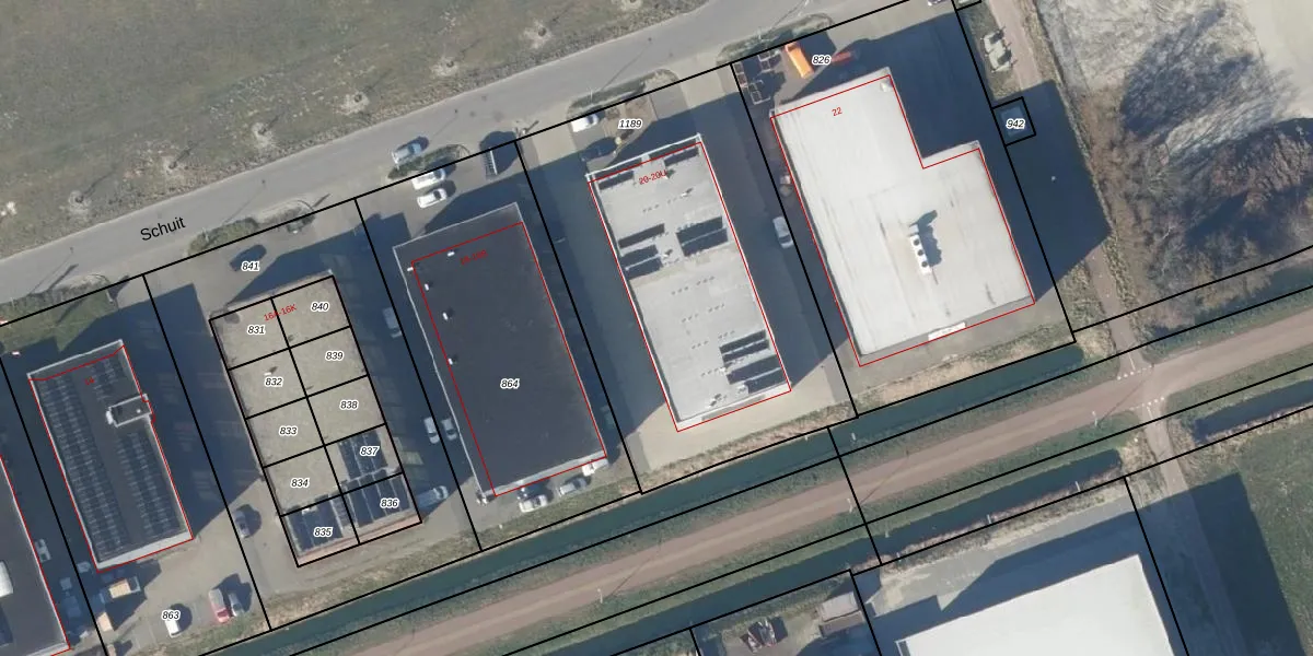 Het perceel waarop Schuit 20-E staat heeft een oppervlakte van 1991 m². Dit is een zeer groot perceel. De perceeloppervlakte wordt geregistreerd door het Kadaster. Gedetailleerde informatie over de maten van dit perceel kunt u vinden in het rapport Kadastrale kaart met maatvoering van Schuit 20-E.