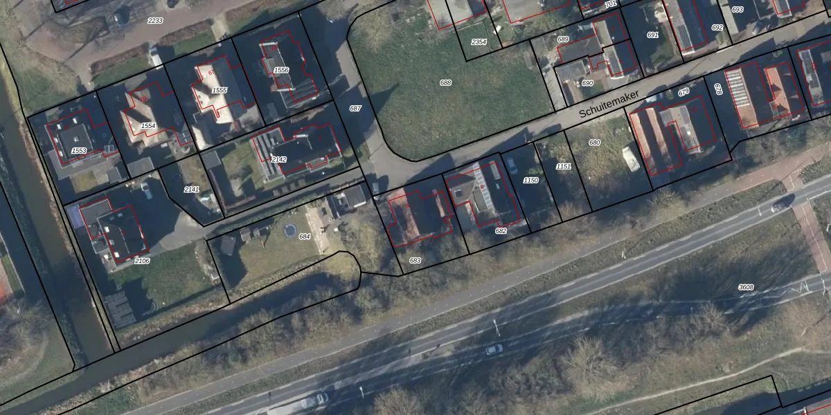 Het perceel waarop Schuitemaker 6 staat heeft een oppervlakte van 380 m². Dit is een groot perceel. De perceeloppervlakte wordt geregistreerd door het Kadaster. Gedetailleerde informatie over de maten van dit perceel kunt u vinden in het rapport Kadastrale kaart met maatvoering van Schuitemaker 6.