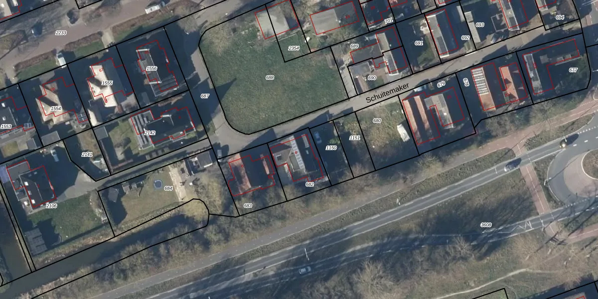 Gebruik de zoekbalk of klik op een perceel voor informatie over de adressen binnen dit perceel.