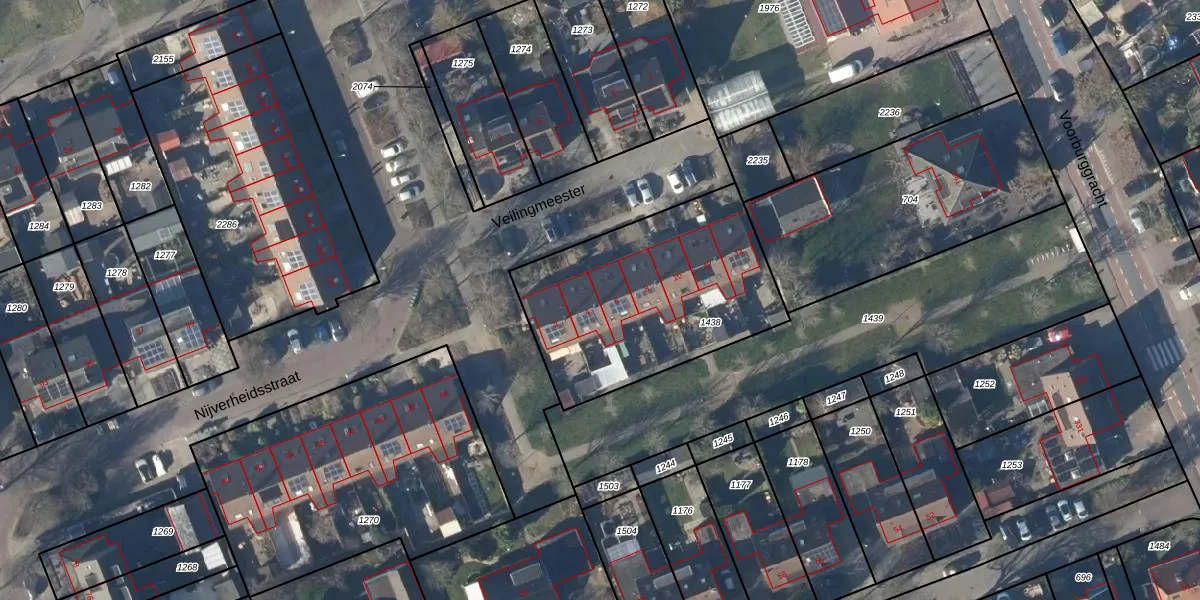 Het perceel waarop Veilingmeester 6 staat heeft een oppervlakte van 1084 m². Dit is een zeer groot perceel. De perceeloppervlakte wordt geregistreerd door het Kadaster. Gedetailleerde informatie over de maten van dit perceel kunt u vinden in het rapport Kadastrale kaart met maatvoering van Veilingmeester 6.