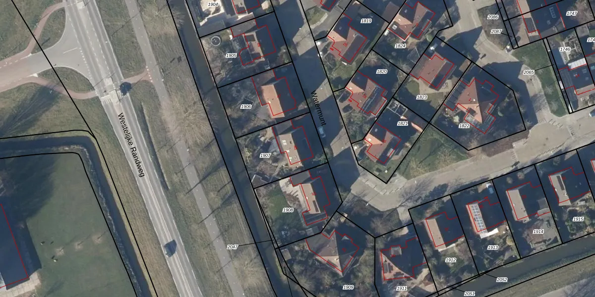 Het perceel waarop Watermunt 45 staat heeft een oppervlakte van 478 m². Dit is een groot perceel. De perceeloppervlakte wordt geregistreerd door het Kadaster. Gedetailleerde informatie over de maten van dit perceel kunt u vinden in het rapport Kadastrale kaart met maatvoering van Watermunt 45.
