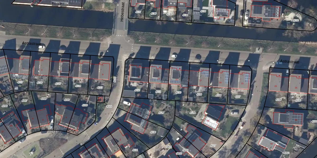 Het perceel waarop Astrastraat 13 staat heeft een oppervlakte van 315 m². Dit is een groot perceel. De perceeloppervlakte wordt geregistreerd door het Kadaster. Gedetailleerde informatie over de maten van dit perceel kunt u vinden in het rapport Kadastrale kaart met maatvoering van Astrastraat 13.