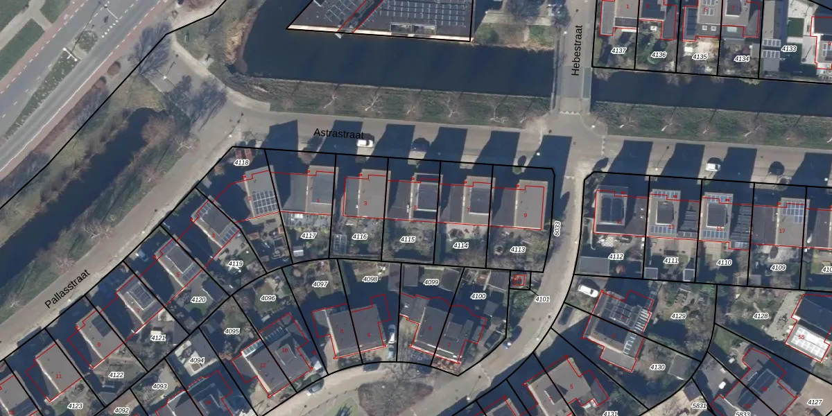 Astrastraat 5 is gelegen op kadastraal perceel ODP02A4115. Deze kadastrale aanduiding is uniek en wordt gebruikt door het Kadaster om eigendomsrechten en andere zakelijke rechten vast te leggen. Het perceel maakt onderdeel uit van de kadastrale gemeente Oudorp.