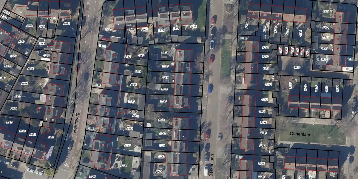 Gebruik de zoekbalk of klik op een perceel voor informatie over de adressen binnen dit perceel.
