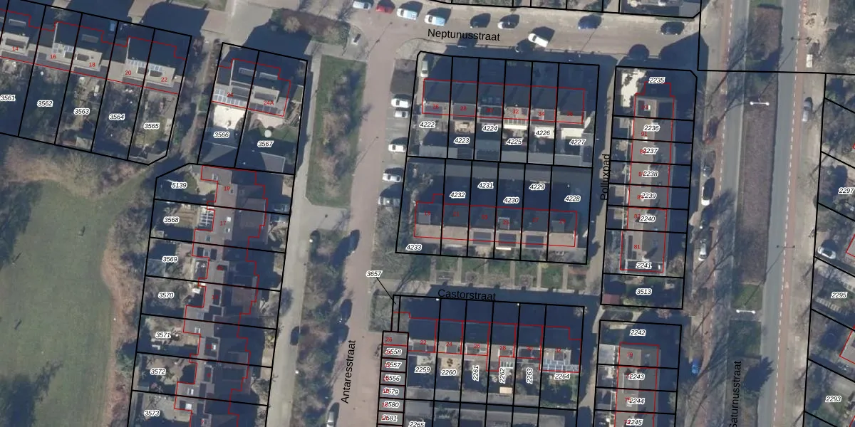 Het perceel waarop Castorstraat 19 staat heeft een oppervlakte van 222 m². Dit is een middelgroot perceel. De perceeloppervlakte wordt geregistreerd door het Kadaster. Gedetailleerde informatie over de maten van dit perceel kunt u vinden in het rapport Kadastrale kaart met maatvoering van Castorstraat 19.