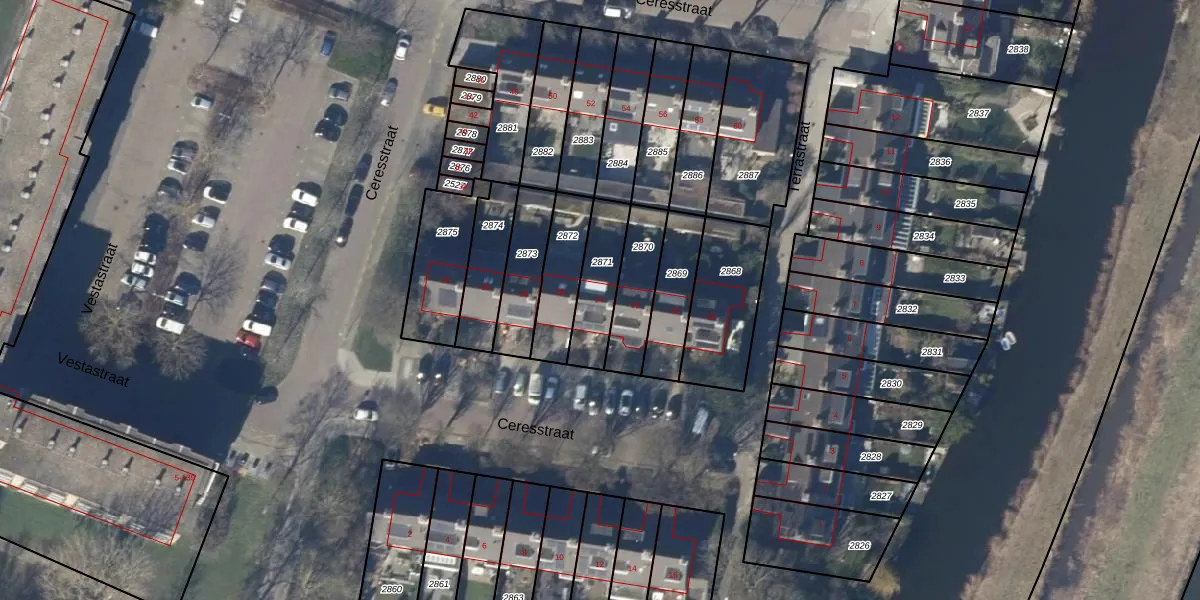 Het perceel waarop Ceresstraat 24 staat heeft een oppervlakte van 176 m². Dit is een middelgroot perceel. De perceeloppervlakte wordt geregistreerd door het Kadaster. Gedetailleerde informatie over de maten van dit perceel kunt u vinden in het rapport Kadastrale kaart met maatvoering van Ceresstraat 24.
