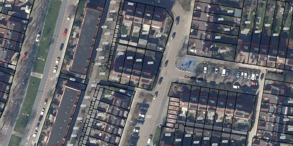 Ceresstraat 33 is gelegen op kadastraal perceel ODP02A2653. Deze kadastrale aanduiding is uniek en wordt gebruikt door het Kadaster om eigendomsrechten en andere zakelijke rechten vast te leggen. Het perceel maakt onderdeel uit van de kadastrale gemeente Oudorp.