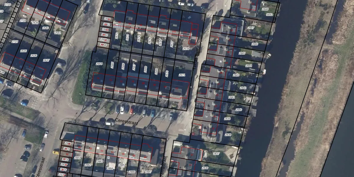 Gebruik de zoekbalk of klik op een perceel voor informatie over de adressen binnen dit perceel.