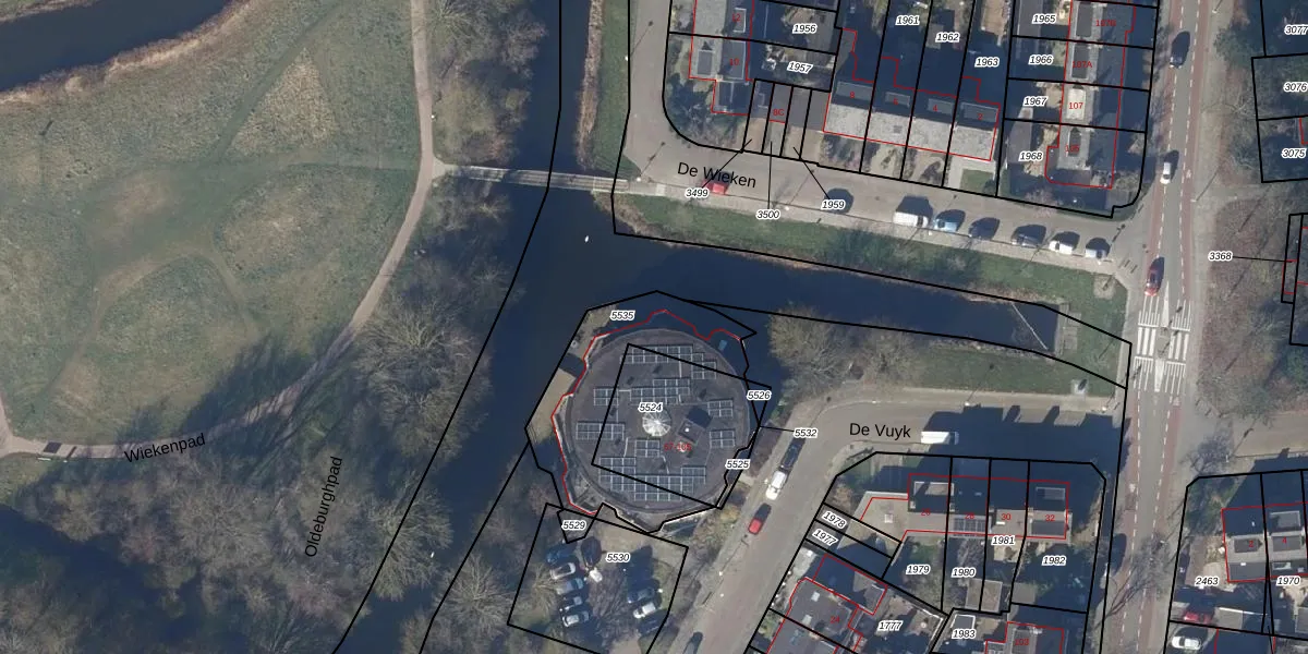 Het perceel waarop De Vuyk 103 staat heeft een oppervlakte van 530 m². Dit is een groot perceel. De perceeloppervlakte wordt geregistreerd door het Kadaster. Gedetailleerde informatie over de maten van dit perceel kunt u vinden in het rapport Kadastrale kaart met maatvoering van De Vuyk 103.