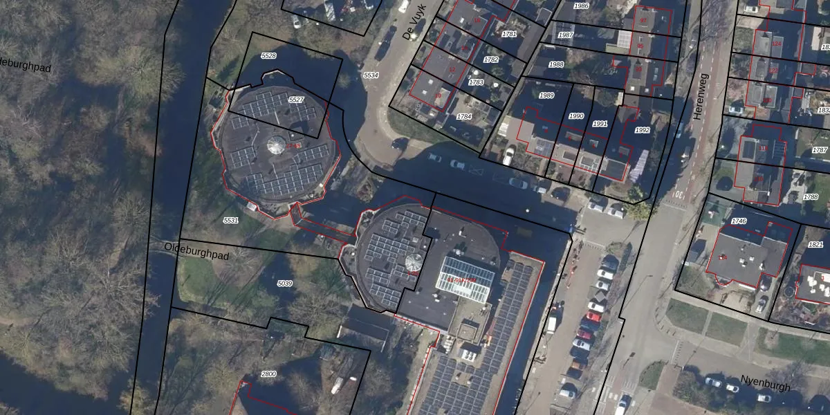 Het perceel waarop De Vuyk 25 staat heeft een oppervlakte van 1812 m². Dit is een zeer groot perceel. De perceeloppervlakte wordt geregistreerd door het Kadaster. Gedetailleerde informatie over de maten van dit perceel kunt u vinden in het rapport Kadastrale kaart met maatvoering van De Vuyk 25.