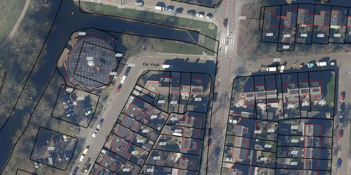 Gebruik de zoekbalk of klik op een perceel voor informatie over de adressen binnen dit perceel.