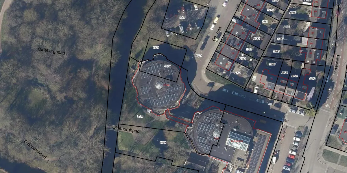 Het perceel waarop De Vuyk 39 staat heeft een oppervlakte van 1812 m². Dit is een zeer groot perceel. De perceeloppervlakte wordt geregistreerd door het Kadaster. Gedetailleerde informatie over de maten van dit perceel kunt u vinden in het rapport Kadastrale kaart met maatvoering van De Vuyk 39.