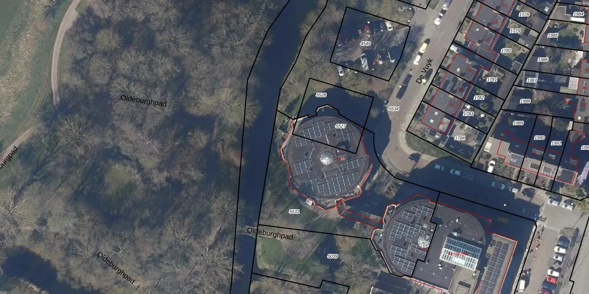 Het perceel waarop De Vuyk 47 staat heeft een oppervlakte van 1812 m². Dit is een zeer groot perceel. De perceeloppervlakte wordt geregistreerd door het Kadaster. Gedetailleerde informatie over de maten van dit perceel kunt u vinden in het rapport Kadastrale kaart met maatvoering van De Vuyk 47.