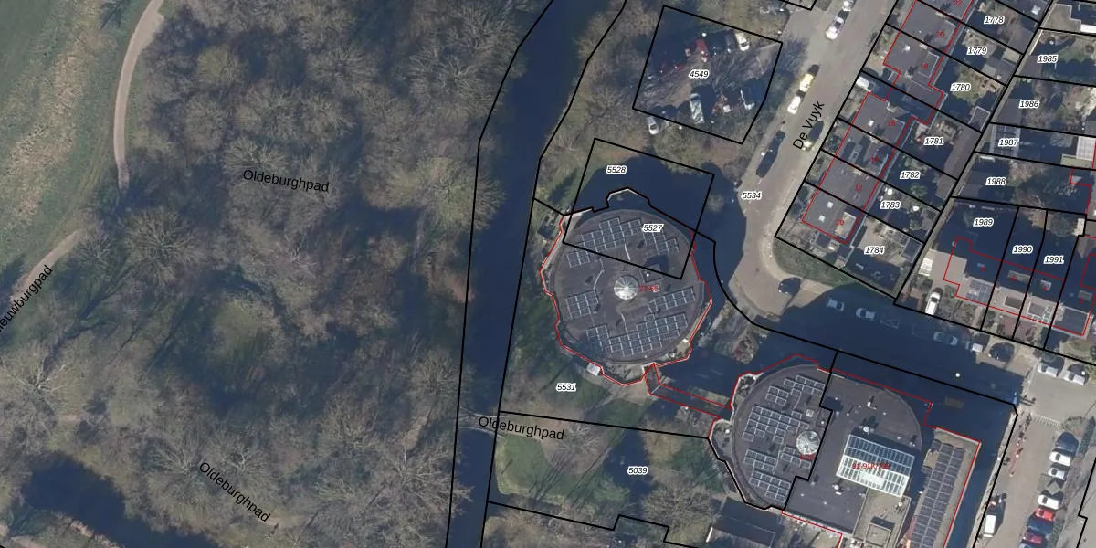 Het perceel waarop De Vuyk 63 staat heeft een oppervlakte van 1812 m². Dit is een zeer groot perceel. De perceeloppervlakte wordt geregistreerd door het Kadaster. Gedetailleerde informatie over de maten van dit perceel kunt u vinden in het rapport Kadastrale kaart met maatvoering van De Vuyk 63.