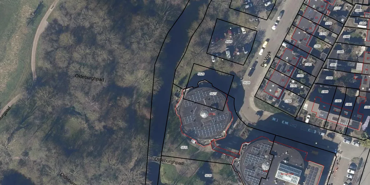 Het perceel waarop De Vuyk 65 staat heeft een oppervlakte van 1812 m². Dit is een zeer groot perceel. De perceeloppervlakte wordt geregistreerd door het Kadaster. Gedetailleerde informatie over de maten van dit perceel kunt u vinden in het rapport Kadastrale kaart met maatvoering van De Vuyk 65.