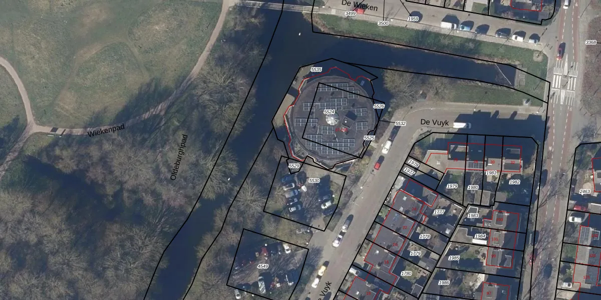 Het perceel waarop De Vuyk 97 staat heeft een oppervlakte van 530 m². Dit is een groot perceel. De perceeloppervlakte wordt geregistreerd door het Kadaster. Gedetailleerde informatie over de maten van dit perceel kunt u vinden in het rapport Kadastrale kaart met maatvoering van De Vuyk 97.