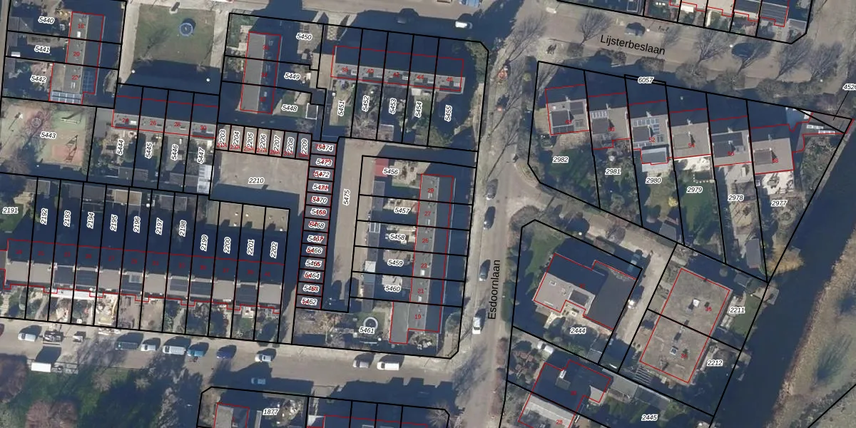 Gebruik de zoekbalk of klik op een perceel voor informatie over de adressen binnen dit perceel.