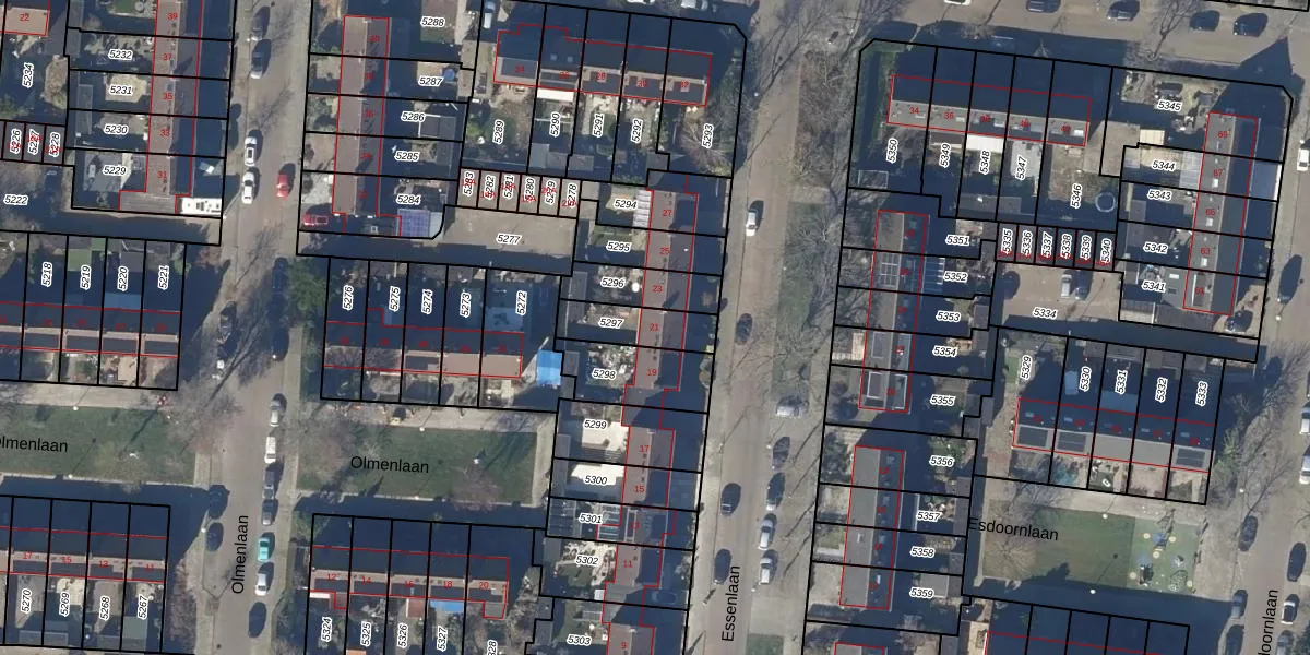 Gebruik de zoekbalk of klik op een perceel voor informatie over de adressen binnen dit perceel.