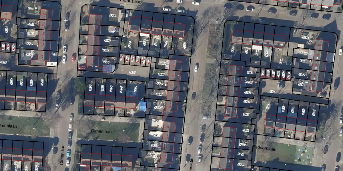 Gebruik de zoekbalk of klik op een perceel voor informatie over de adressen binnen dit perceel.
