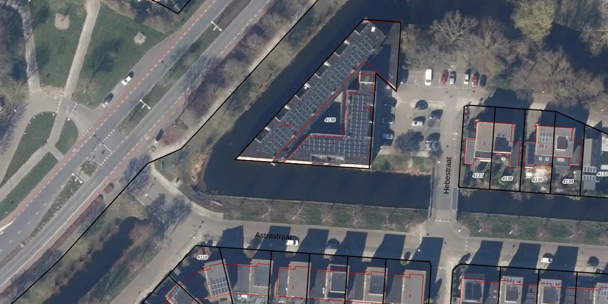 Het perceel waarop Hebestraat 46 staat heeft een oppervlakte van 1355 m². Dit is een zeer groot perceel. De perceeloppervlakte wordt geregistreerd door het Kadaster. Gedetailleerde informatie over de maten van dit perceel kunt u vinden in het rapport Kadastrale kaart met maatvoering van Hebestraat 46.