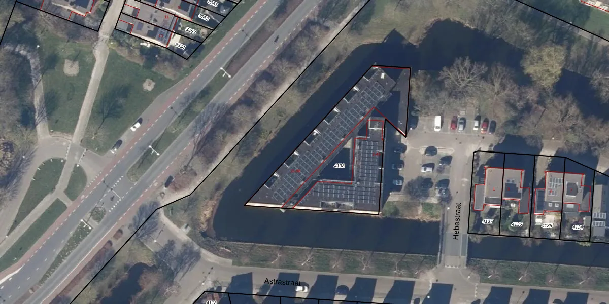 Het perceel waarop Hebestraat 52 staat heeft een oppervlakte van 1355 m². Dit is een zeer groot perceel. De perceeloppervlakte wordt geregistreerd door het Kadaster. Gedetailleerde informatie over de maten van dit perceel kunt u vinden in het rapport Kadastrale kaart met maatvoering van Hebestraat 52.