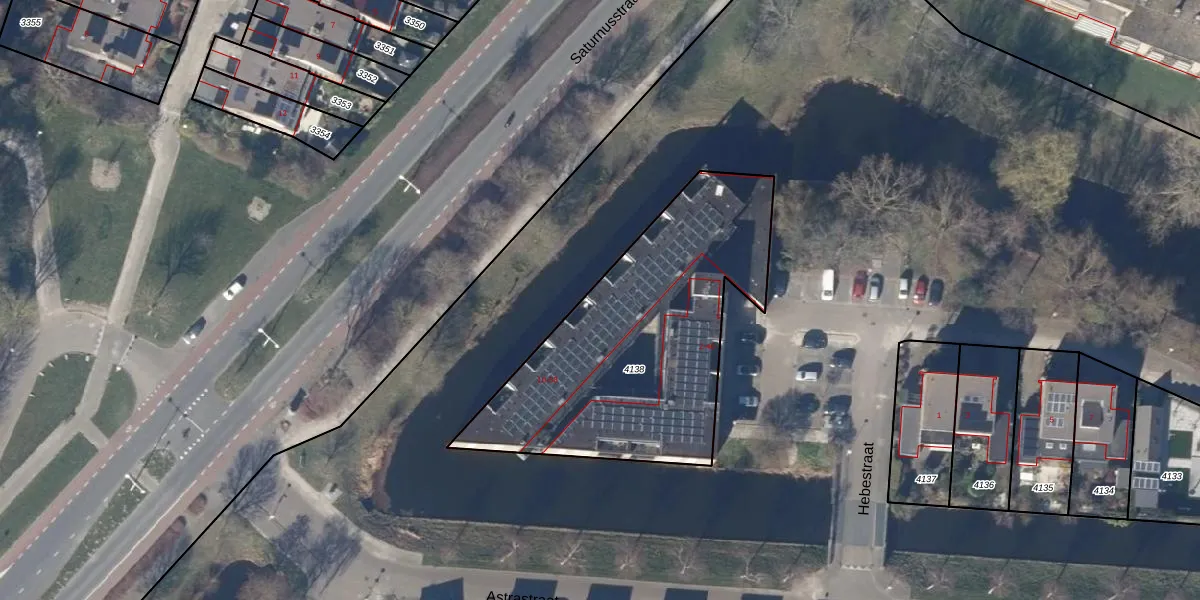 Het perceel waarop Hebestraat 54 staat heeft een oppervlakte van 1355 m². Dit is een zeer groot perceel. De perceeloppervlakte wordt geregistreerd door het Kadaster. Gedetailleerde informatie over de maten van dit perceel kunt u vinden in het rapport Kadastrale kaart met maatvoering van Hebestraat 54.