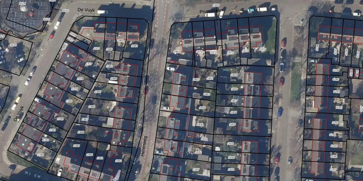 Gebruik de zoekbalk of klik op een perceel voor informatie over de adressen binnen dit perceel.