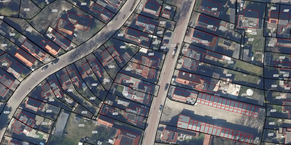 Gebruik de zoekbalk of klik op een perceel voor informatie over de adressen binnen dit perceel.