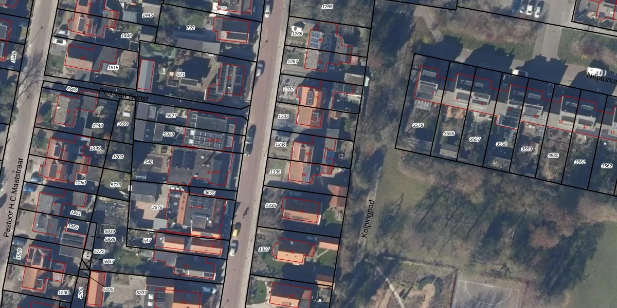 Gebruik de zoekbalk of klik op een perceel voor informatie over de adressen binnen dit perceel.